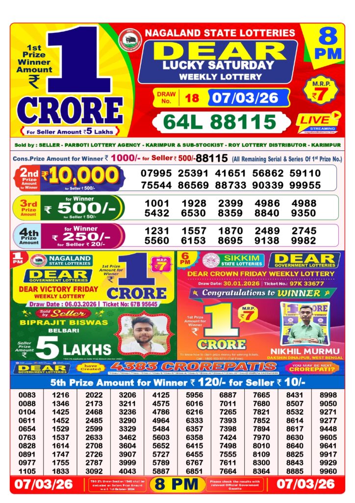 Dhankesari Today Result continues to be updated daily for lottery enthusiasts who closely follow the Lottery Sambad result today. The Dhankesari lottery draws are conducted under government approved state lotteries, including the Nagaland State Lottery, West Bengal State Lottery, and Sikkim State Lottery, making it one of the most popular lottery systems in India. As per the official schedule, the Dhankesari lottery result is declared three times a day: 1:00 PM Morning Draw, 6:00 PM Day Draw and 8:00 PM Night Draw. Players eagerly wait for each draw to check their luck in the Dhankesari lottery sambad, which publishes results promptly after every announcement. The transparency and regular updates have made Dhankesari result today a trusted source for daily lottery information.
